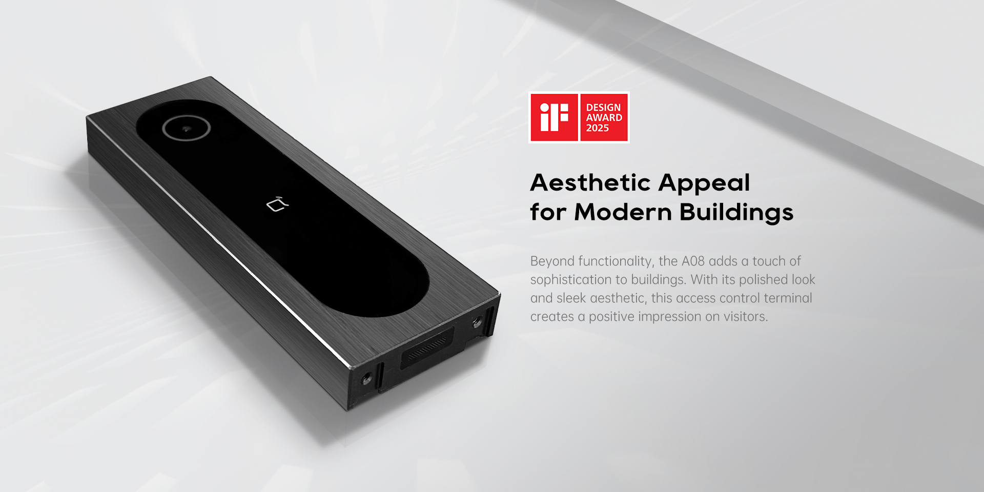 A08, iF Design Award 2025 Winner, is a cutting-edge access control terminal featuring a compact profile and advanced unlocking capabilities, ensuring robust security without compromising efficiency.