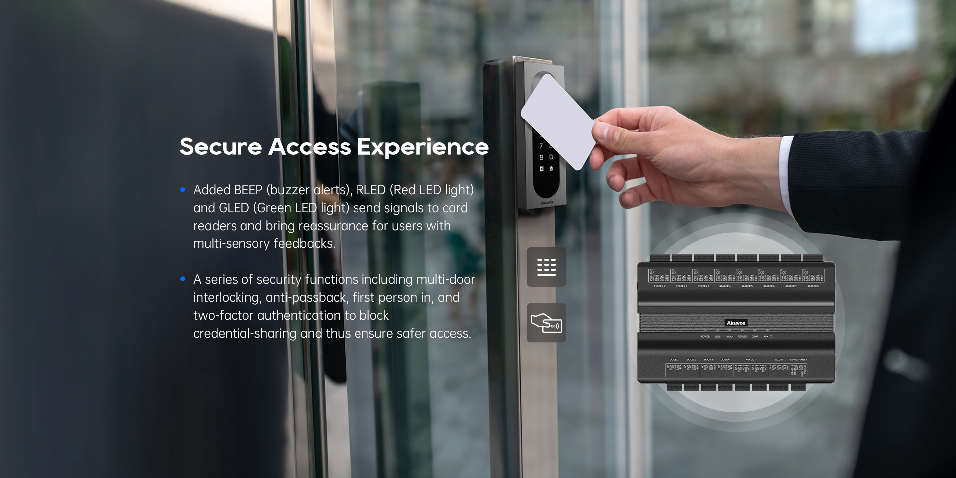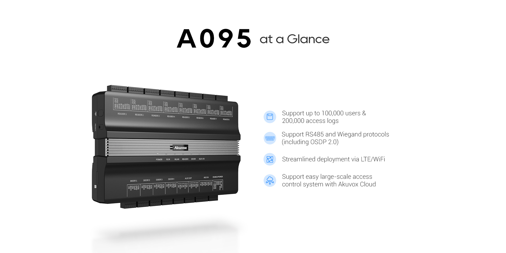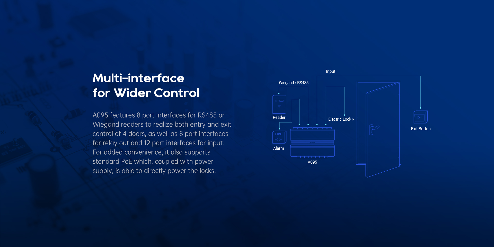 A smart access controller that supports cloud management and a wide range of advanced features such as anti-passback, first person in, and two-factor authentication. It is equipped with more interfaces including PoE+ and Wi-Fi to further streamline deployment and meet diverse needs.