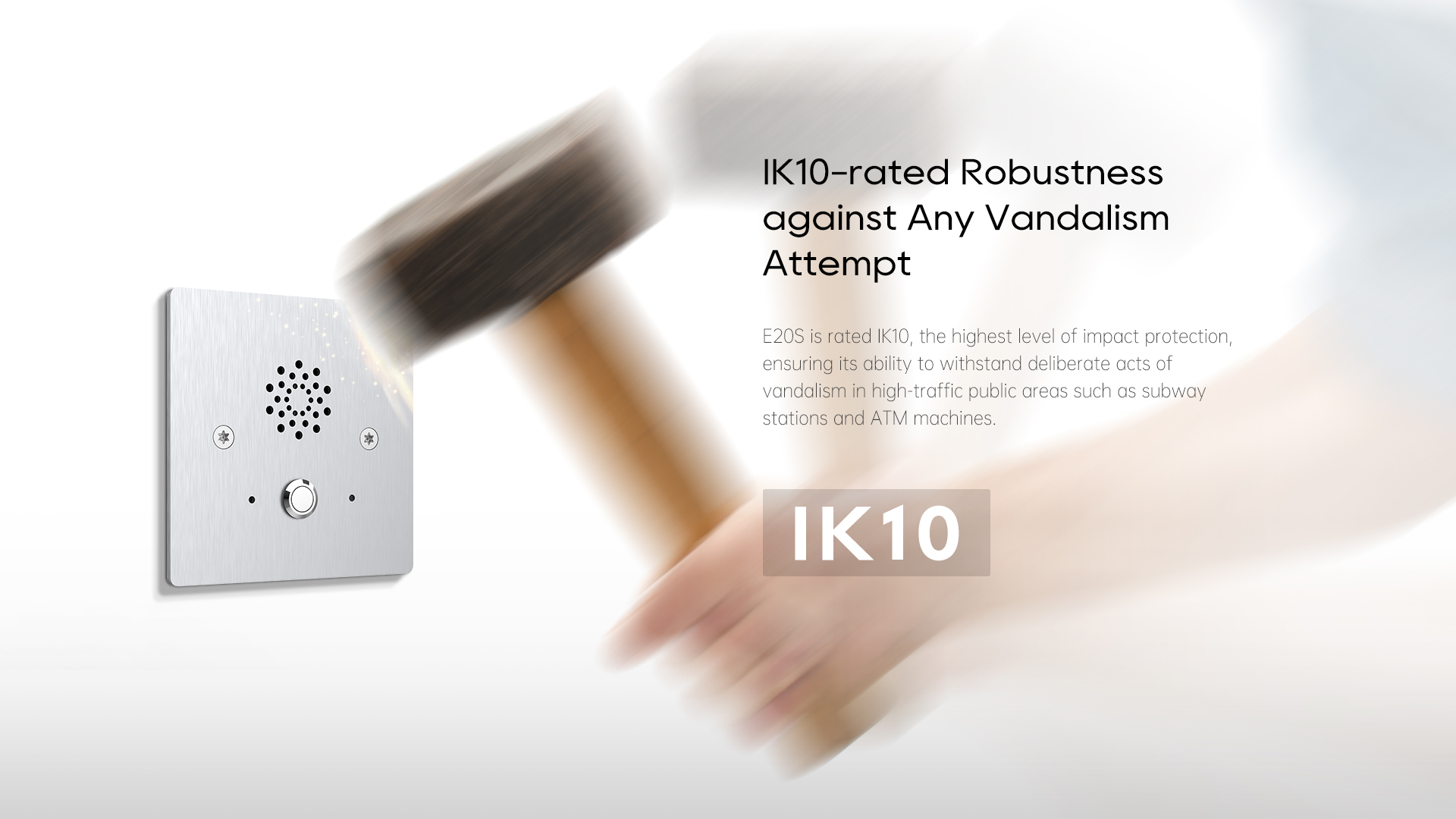 E20S is a compact SIP emergency intercom that is ruggedized with 316-grade stainless steel. It is designed for indoor use and is compatible with 1299 and 86 type single in-wall boxes.