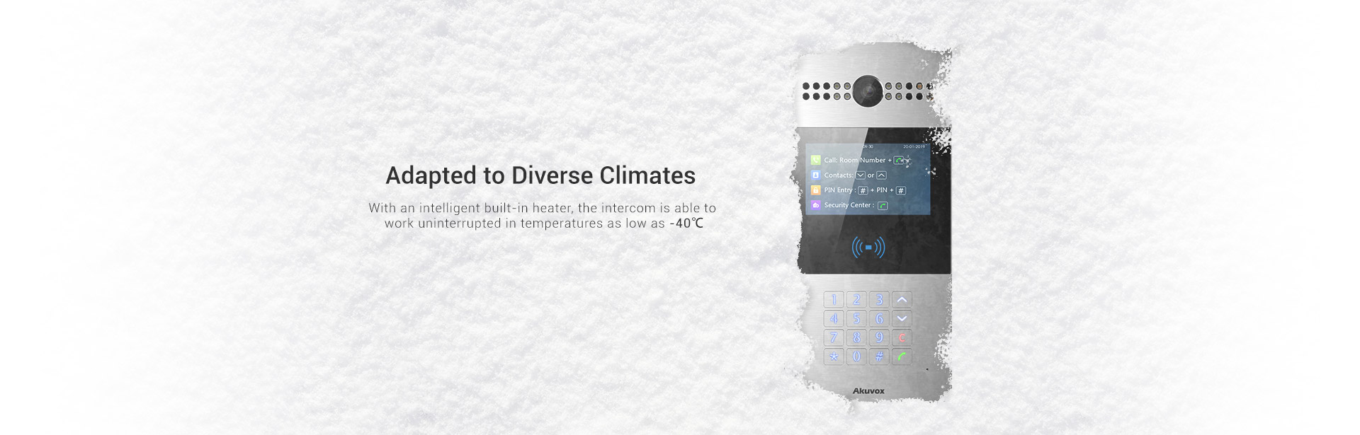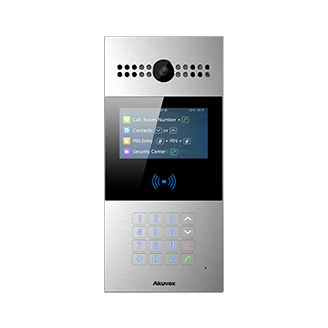 Akuvox R28 is a SIP video doorphone with a numeric keypad. It is typically used in apartment buildings.