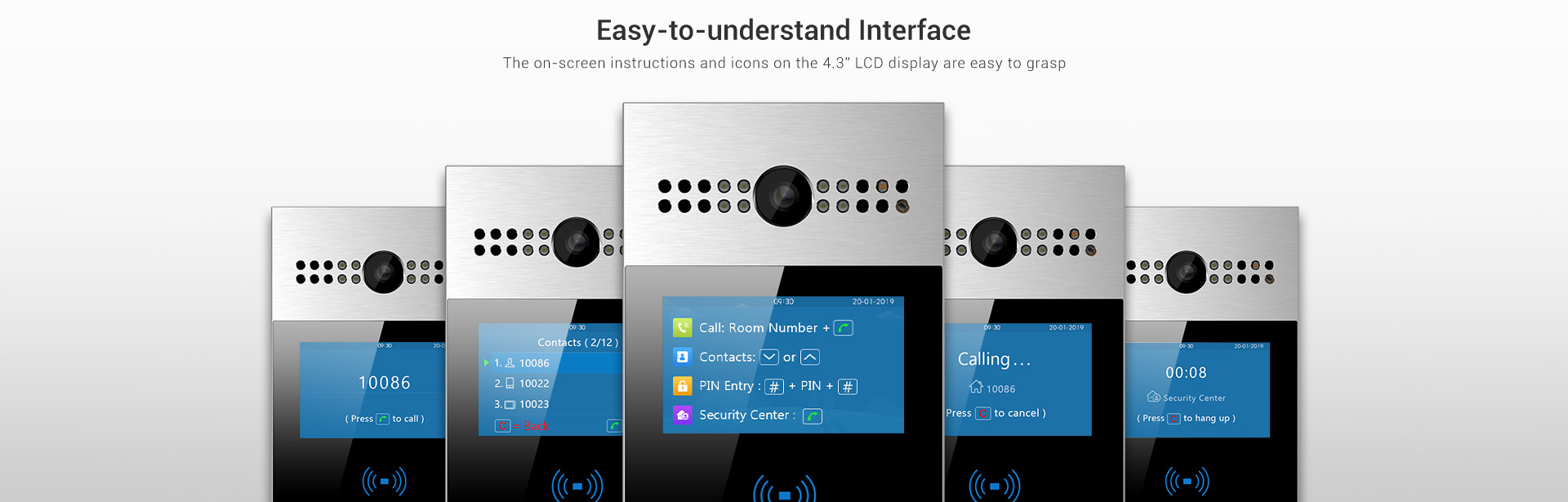 R28A-Induction-Loop-Version | – Silver Aluminium Alloy Front Panel – 4.3″ color TFT LCD – 1 Camera – 13.56MHz & 125kHz Card Reader – Support Induction Loop – Powered by PoE or external power supply – Surface Mount and Flush Mount – IP65/IK06 |