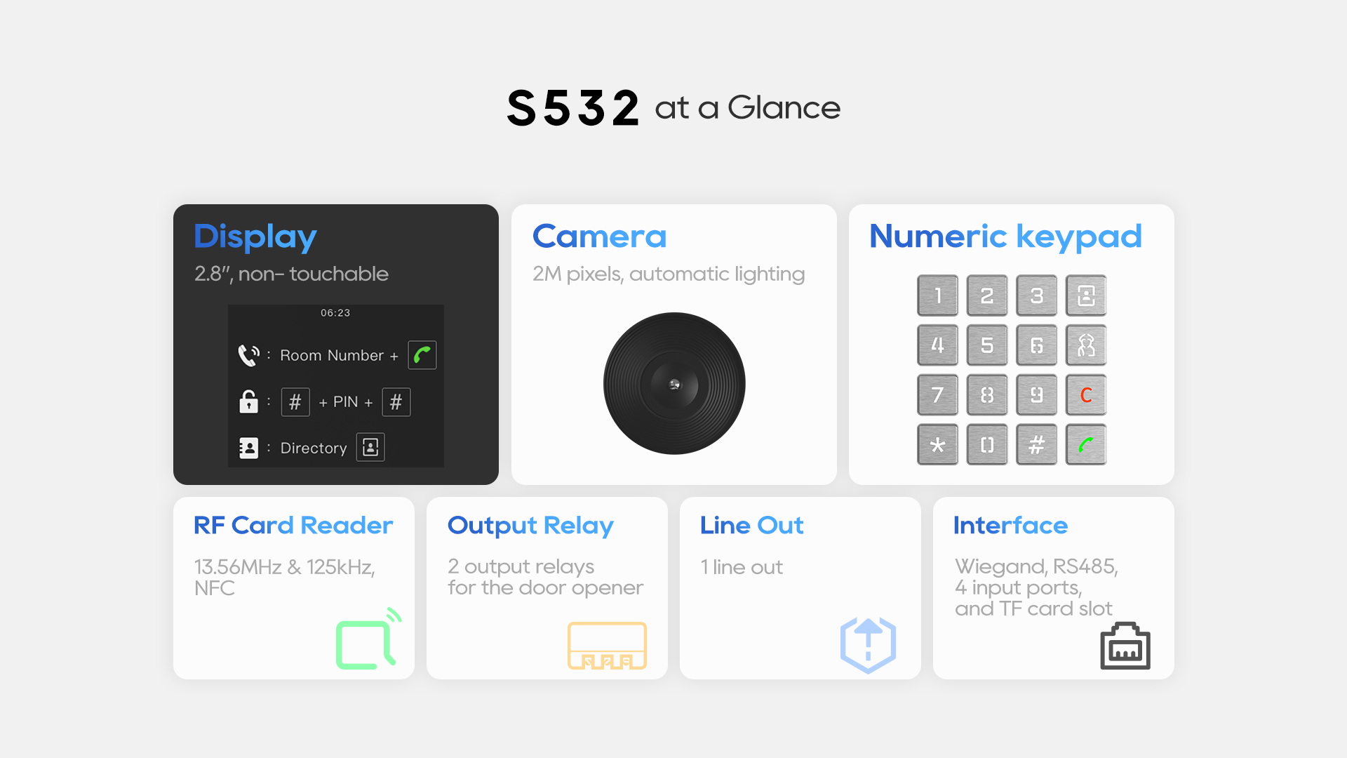 S532 is where the old meets the new. It is a smart SIP door phone that houses an IP-to-analog conversion module, offering an outstanding solution for analog intercom upgrade.